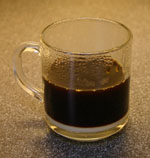 There are two schools of thought here. My understanding is that the authentic answer is coffee with chicory. I have very successfully used canned (!) coffee from Cafe Du Monde or French Market, both available in cans in supermarkets, both are coffee and chicory. (Chicory is a caffeine-free herb whose roots are dried, ground, and roasted and is used to flavor coffee.) I also have had great luck with fresh grinding my own beans without chicory. I often use Starbucks House Blend beans that I grind between drip and French. |