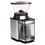 Top of the line, the conical burr is the best grinder you can get. The burr spins slower than the wheel type, hence less messy and less heat. Additionally, oily or flavored coffees are less likely to clog in this type of machine. They are the best, hence, the most expensive. |